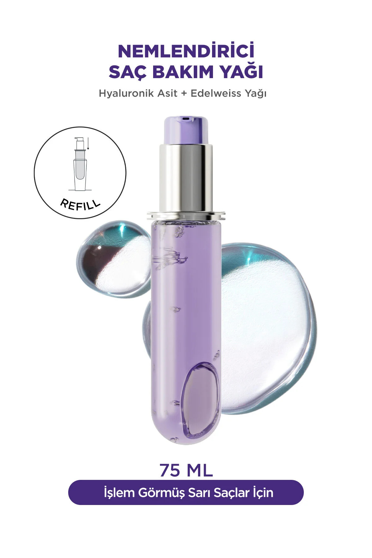 Yeniden doldurulabilir Cicagloss yağı, saçı yoğun şekilde nemlendirir, zayıflamış saç liflerini güçlendirir, saçta açma işlemlerinden dolayı oluşan hasarları onarır ve anında parlaklık etkisi sağlar.; İsviçre Alplerinde 3 bin metre yüksekliğe kadar yetişen ve güçlü rüzgarlara, yüksek UV ışınlarına ve düşük sıcaklıklara karşı dayanıklı olan Edelweiss çiçeği ile zenginleştirilmiştir.; Nazikçe ekstrakte edilmiş bu çiçeğin besleyici aktif bileşenleri yağın içerisinde korunur.; Yenilenen yağ üstün sunar:- Yoğun nemlendirme sağlar.; – Zayıflamış saç liflerini güçlendirir.; – Saçın açma işlemi hasarlarından hızlıca kurtulmasına yardımcı olur, anında parlaklık etkisi sağlar.; Yedek şişe en az %95 geri dönüştürülmüş plastikten yapılmıştır.; *Ürün şişesi en az %30 geri dönüştürülmüş camdan yapılmıştır.; **Uzun ömürlü olacak şekilde tasarlanan bu şişe sürekli olarak yeniden doldurulabilir.; ****Kapak, pompa ve etiket hariç.; **Kapak ve pompa hariç.; ***Sadece 75 ml yeniden doldurulabilir şişe ve 75 ml yedek şişe için.; Boy:75 ml Cilt Tipi:Boyalı/Röfleli Kullanma Amacı:Parlaklık Verici Cinsiyet:UNISEX Yaş Grubu:UNISEX