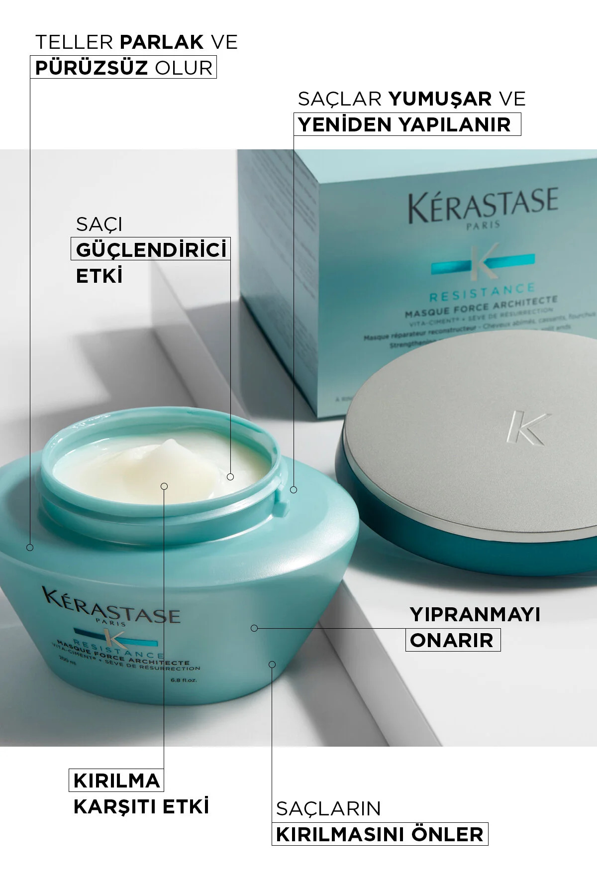 Force Architecte Saç Maskesi zayıf ve yıpranmış saçlar için bakım maskesidir.; Saç tellerini içten onarmak ve güçlendirmek için saça içten dışa nüfuz eder.; Ana İçerikler Vita-Ciment®Pro-Keratin: Keratinin işlevini taklit eden ve saçı yeniden yapılandıran protein.; Seramid: Hücreler arası proteinleri yeniden yaratır, saç tellerini içten güçlendirir.; Diriliş Bitkisi Özleri: Yenileyici gücü ile bilinir.; Kullanım Önerisi: Yıkanmış ve havluyla nemi alınmış saçlara uygulayın.; Uçlara kadar masaj yaparak yedirin.; 5 dakika etki etmesini bekleyin.; Masaj yapın ve iyice durulayın.; Boy:200ml Cilt Tipi:Boyalı/Röfleli Kullanma Amacı:Onarıcı Cinsiyet:UNISEX Yaş Grubu:UNISEX